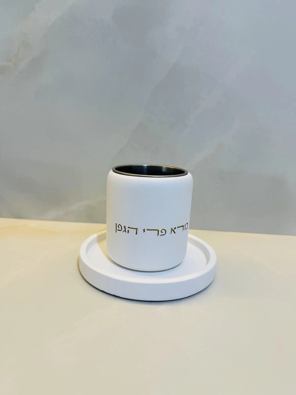 כוס קידוש יוקרתית עשוי מבטון חרוט-לבן כיתוב זהב