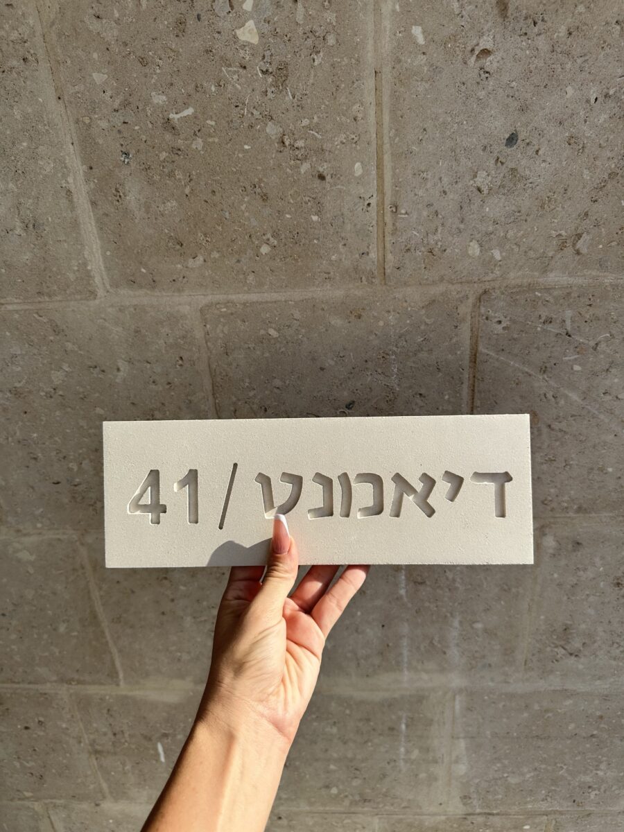 שלט כניסה לבית שם משפחה בשילוב מספר דירה